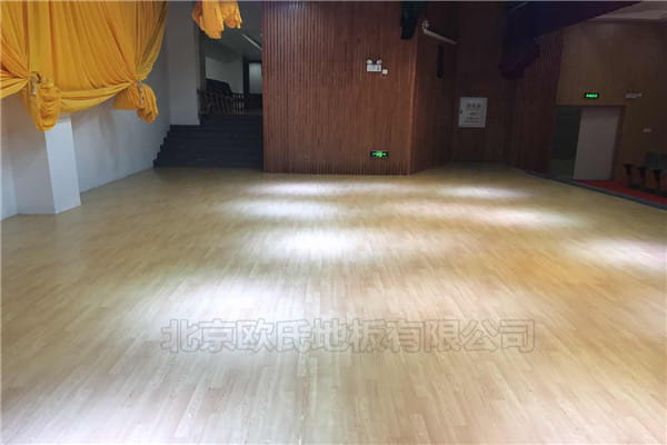 北京世纪耐德科技有限公司承接广东汕尾市陆河县某体育馆会议室舞台地胶,该项目负责人选择的是小丑系列枫木纹舞台地胶,铺设面积150平米,现已铺设完成结束验收.