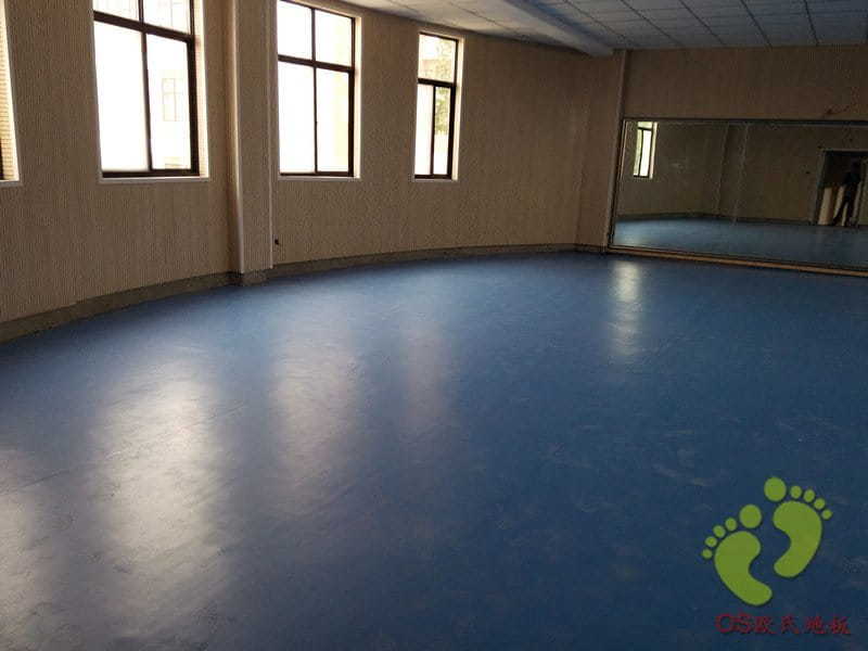 河南商丘工学院铺设舞蹈教室地胶,铺设面积240平方米,学校领导选择进口天蓝色4.0mm,选用欧氏舞者系列耐划痕进口型舞蹈教室地胶.